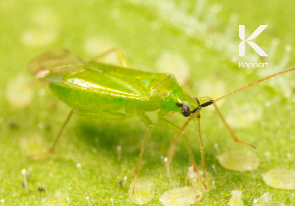 – Compatible amb altres agents de control biològic: Macrolophus caliginosus es pot utilitzar conjuntament amb altres enemics naturals, com les vespes parasitoides de la mosca blanca (Encarsia formosa i Eretmocerus eremicus), per obtenir un control més eficient.